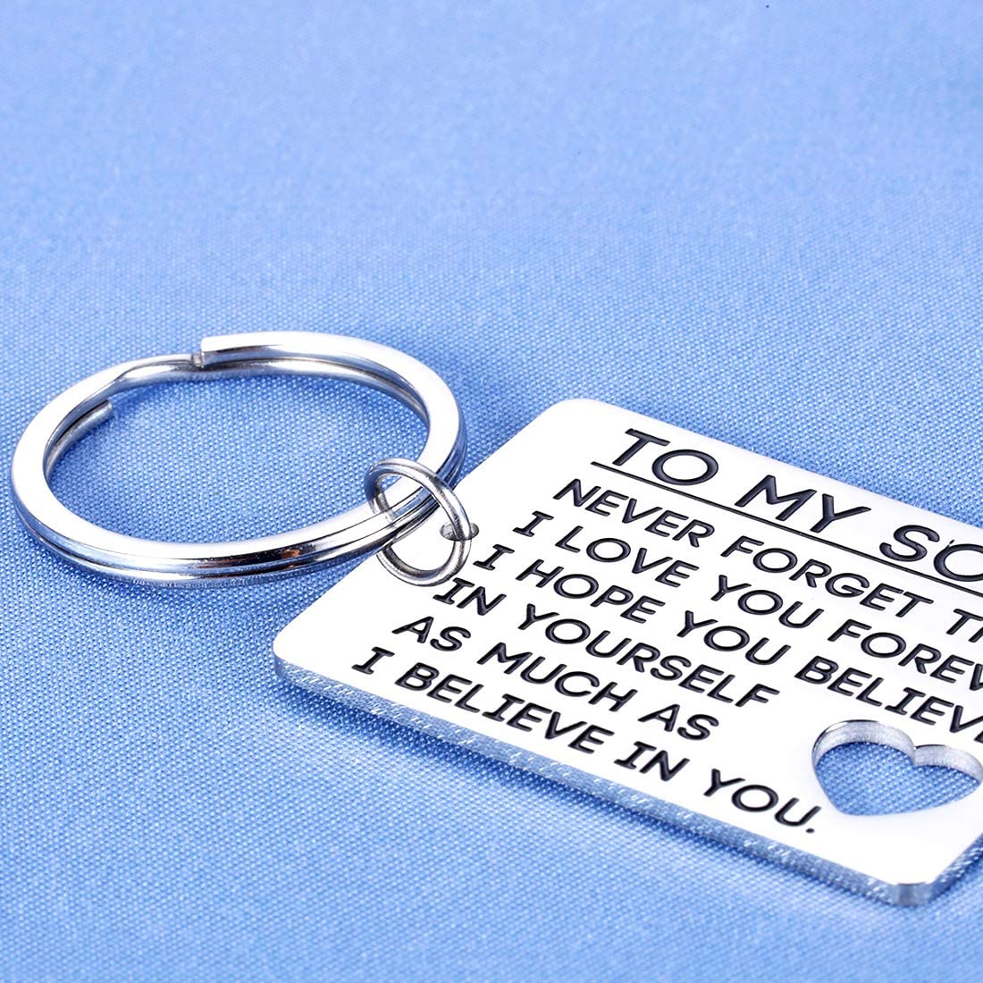 - ️ I Hope You Believe in Yourself Keychain for Son-- Perfect for your little boy 16th 18th birthday, young man who newly became a soldier, adult son Valentine’s Day that is husband-to-be... He can remember he’s loved every time looking at this positive keychain.
