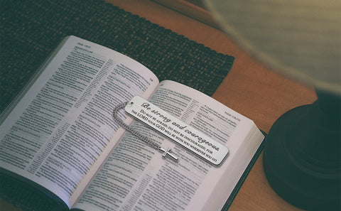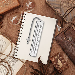 • Christian Gifts for Women-- Gifts for Christian men, religious jewelry for men girls. This Be strong and courageous book mark with cross charm Joshua 1:9 makes a reminder for cancer survivor depression fighter of that anything is possible with God on his her side.
