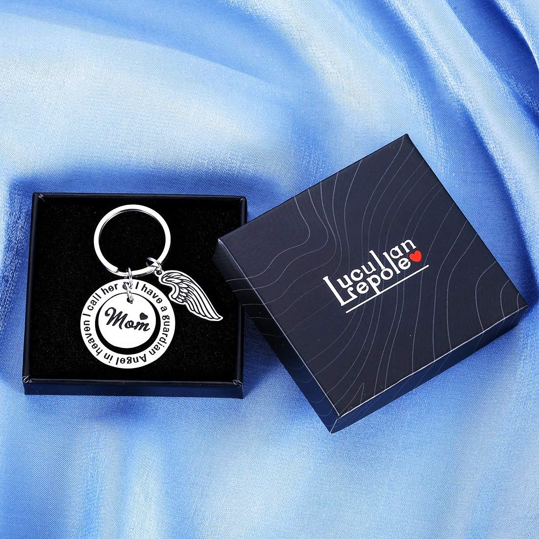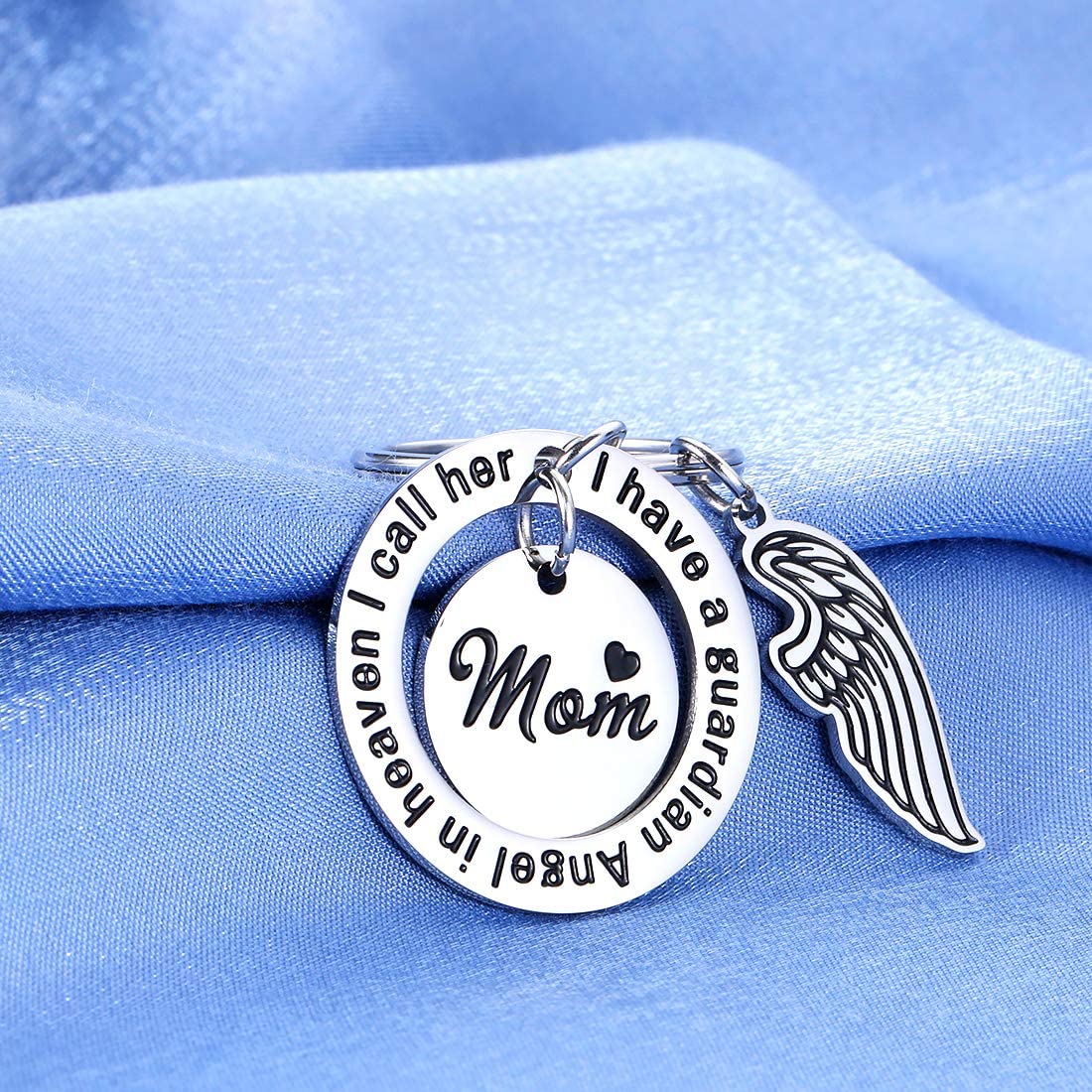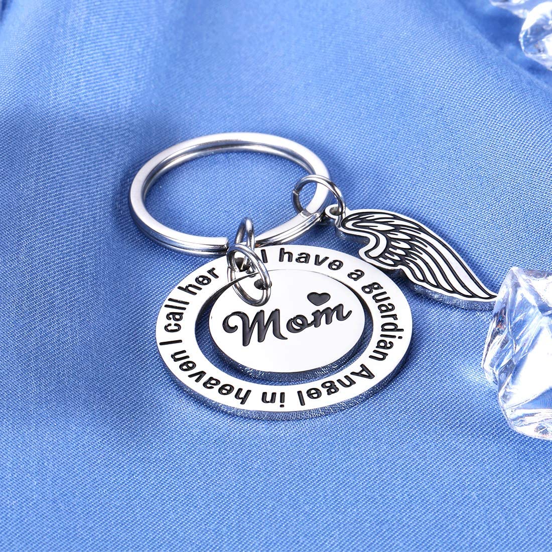 Mom Memorial Gifts Keychain Loss of Mother Sympathy Gift for Loss of Mommy Momma Mama Remembrance Key Chain Christmas Funeral Key Tags Remembering I Have a Guardian Angel I Call Her Mom
