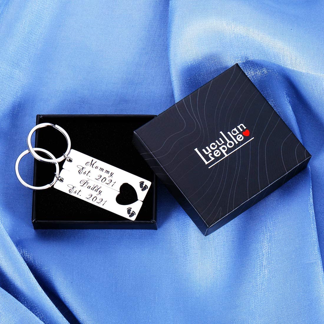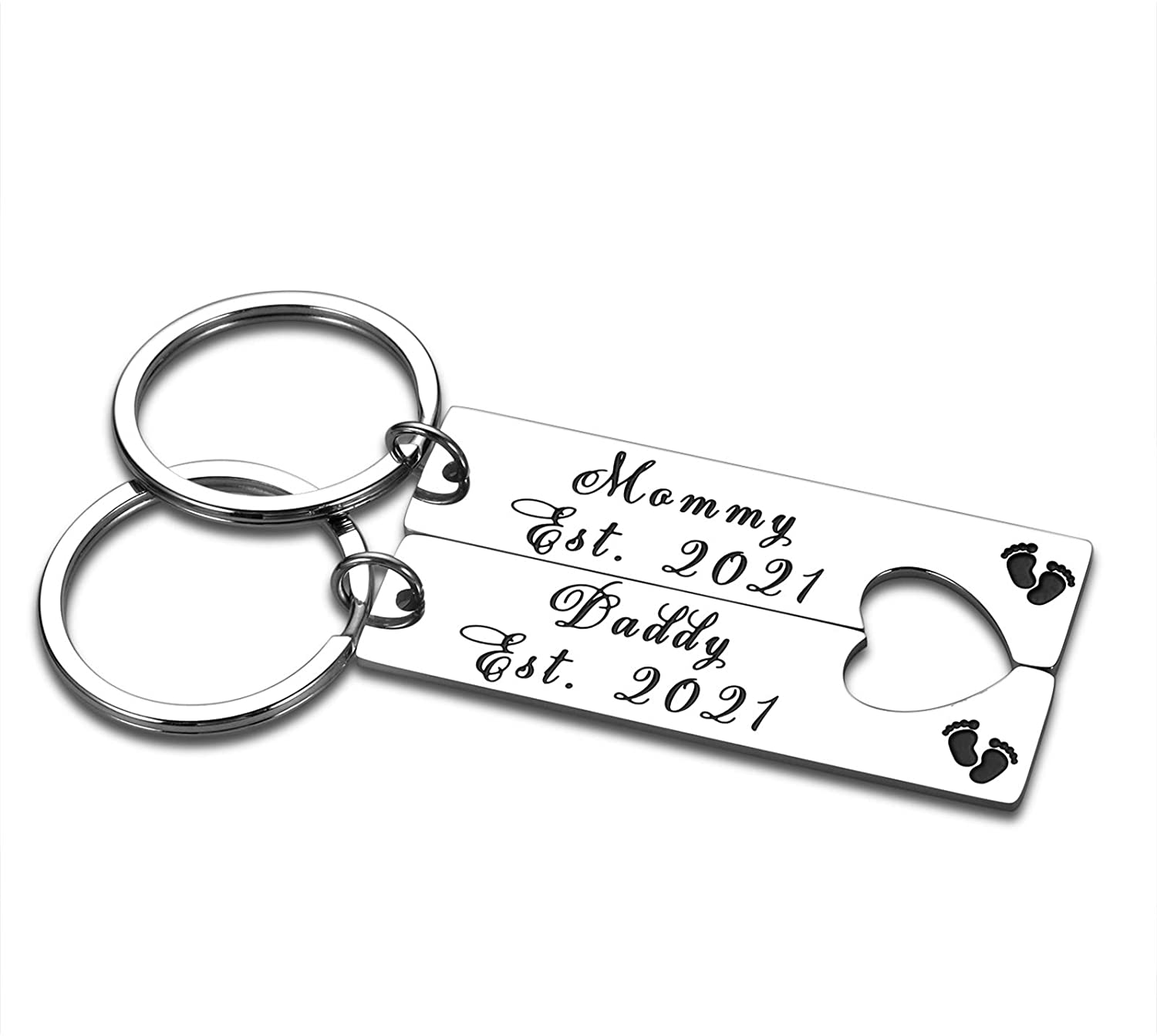 - ❤️ New Mommy and Daddy Gifts 2021-- Give this unique matching heart keychain set engraved with baby footprint as a congratulatory gift to expecting mom dad. Perfect to celebrate the sweetness and happiness of new motherhood fatherhood with 1st time mama papa.