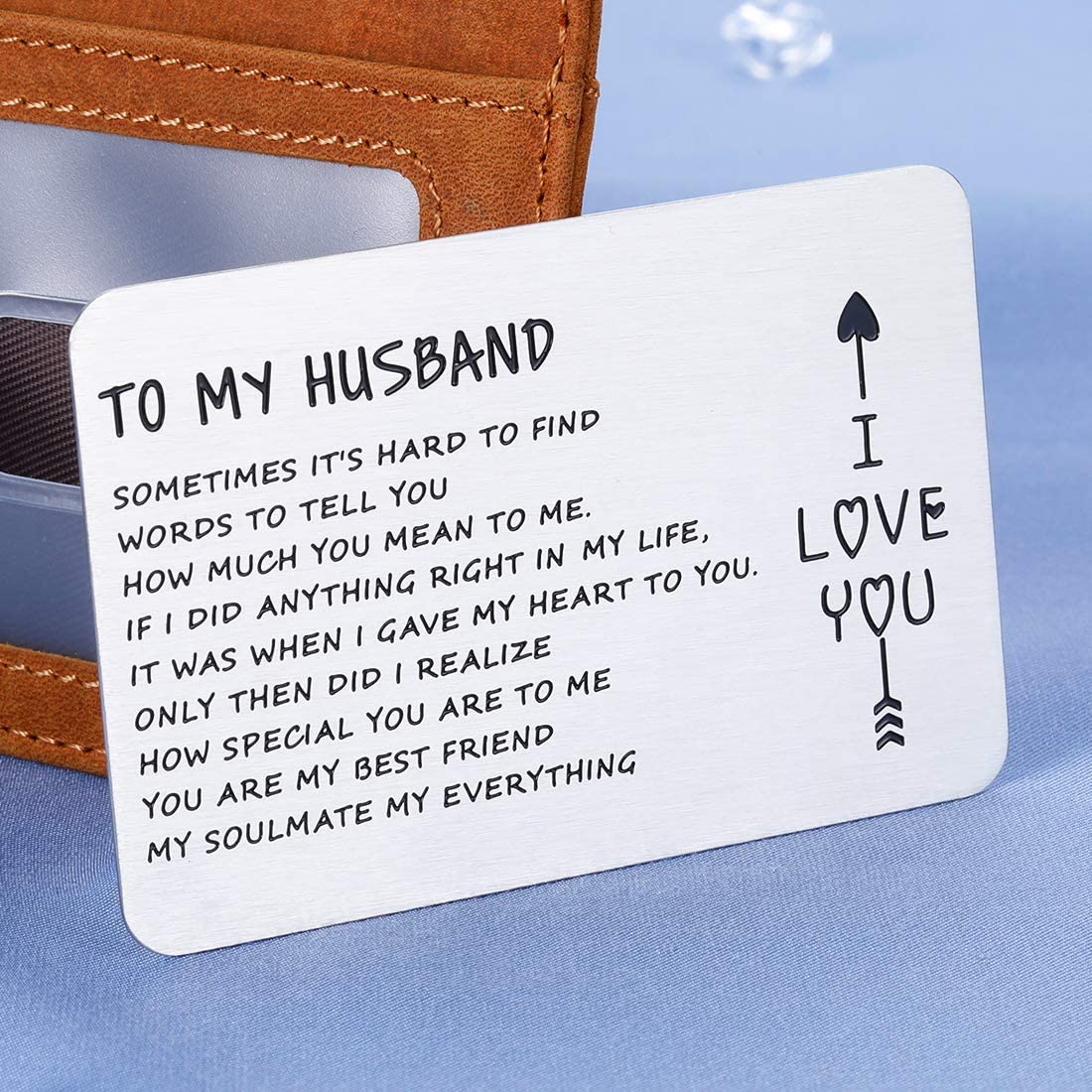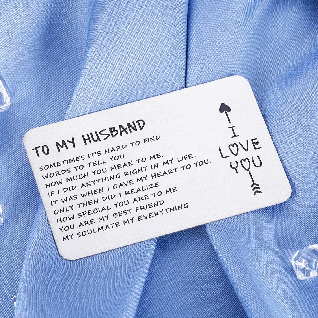 - Husband Birthday Card--Husband wallet card from wife, I love you gifts for him hubby, nice gifts for long distance sweetheart. Card gift for your worse half deployment, Father’s Day, New Year, honeymoon and other more special occasions.