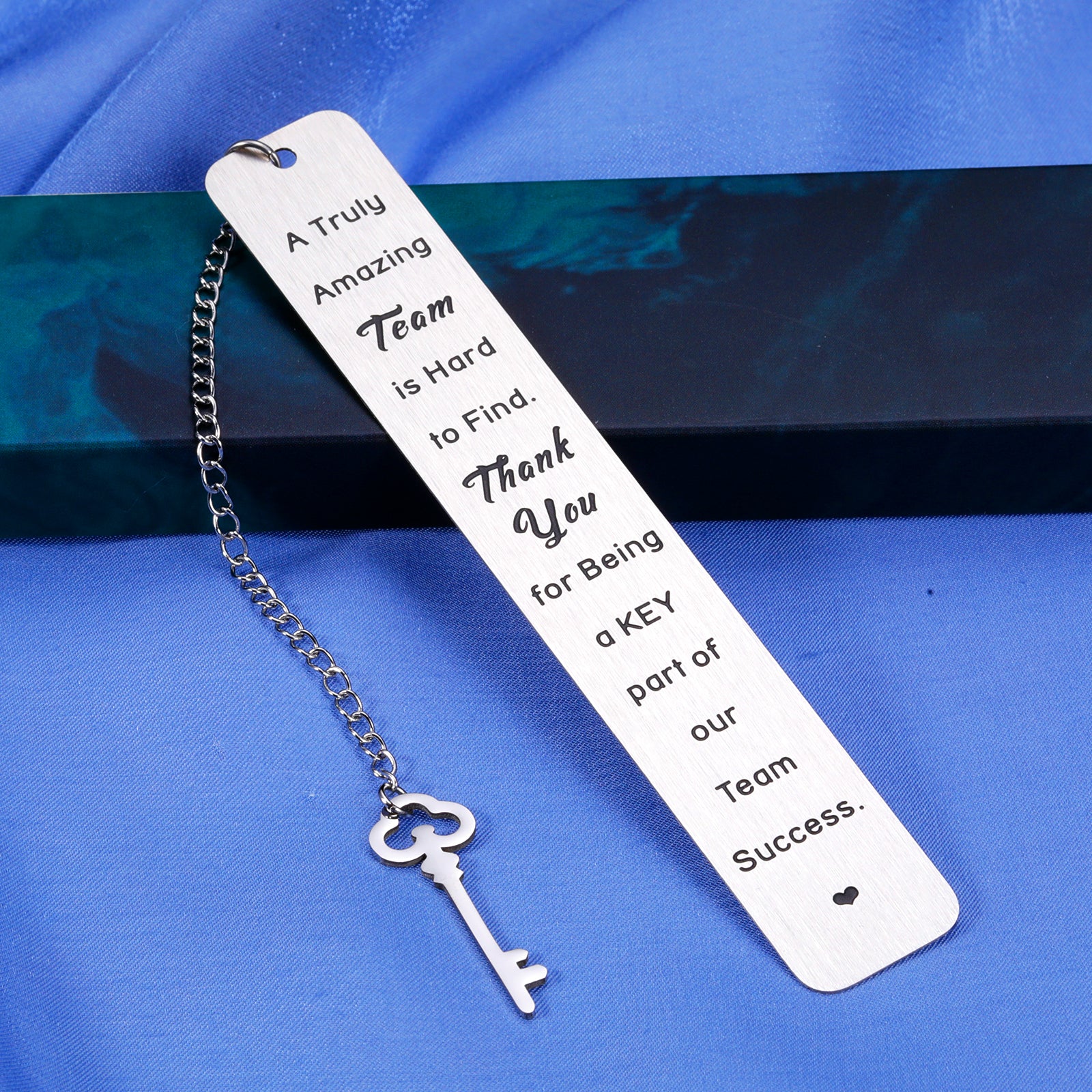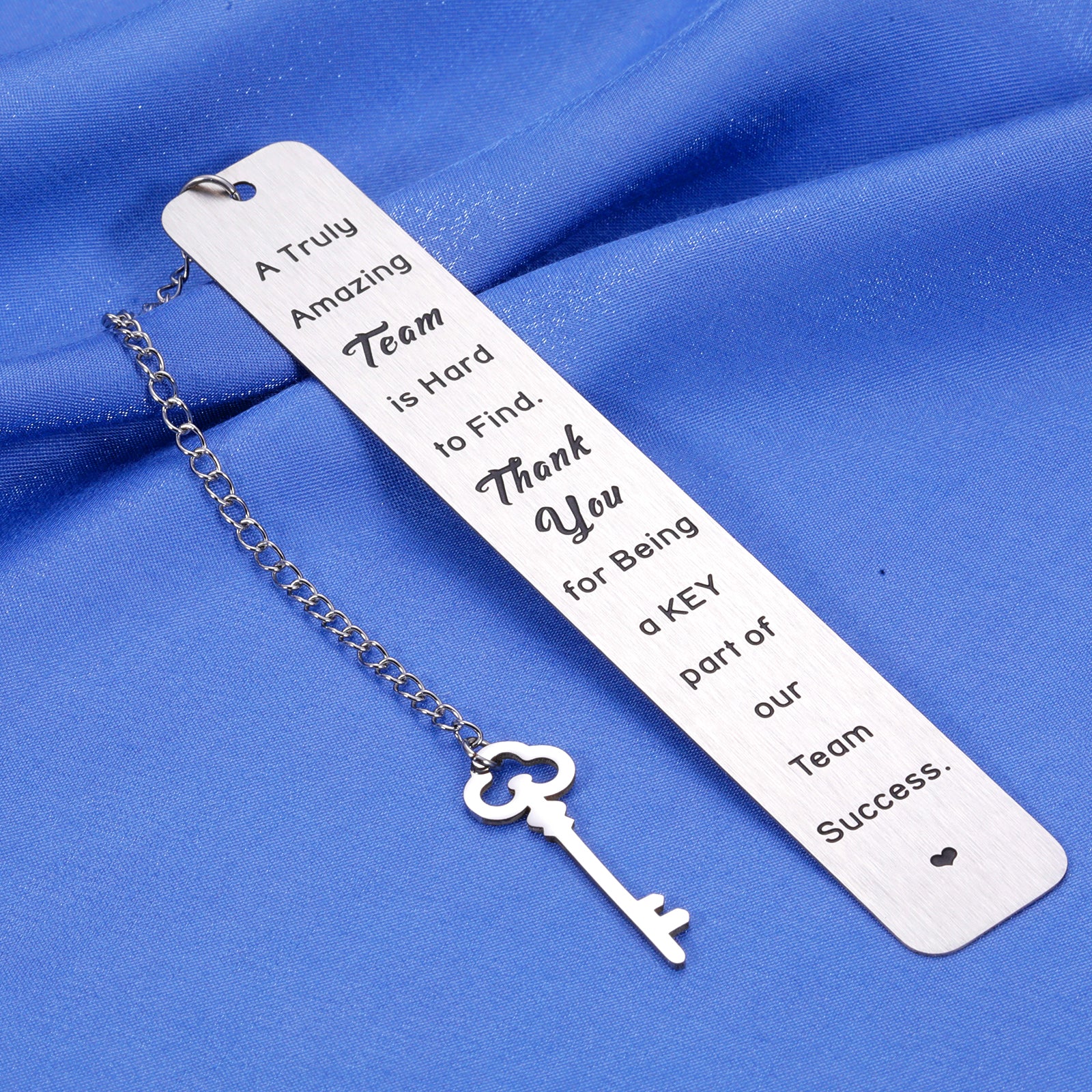- Employee Appreciation Gifts for Women Men-- This sentimental bookmark with a key-shaped charm will be well received as a thank you gift for those lovely work mates and office friends who you have worked with for a long time, sharing happiness and troubles together.