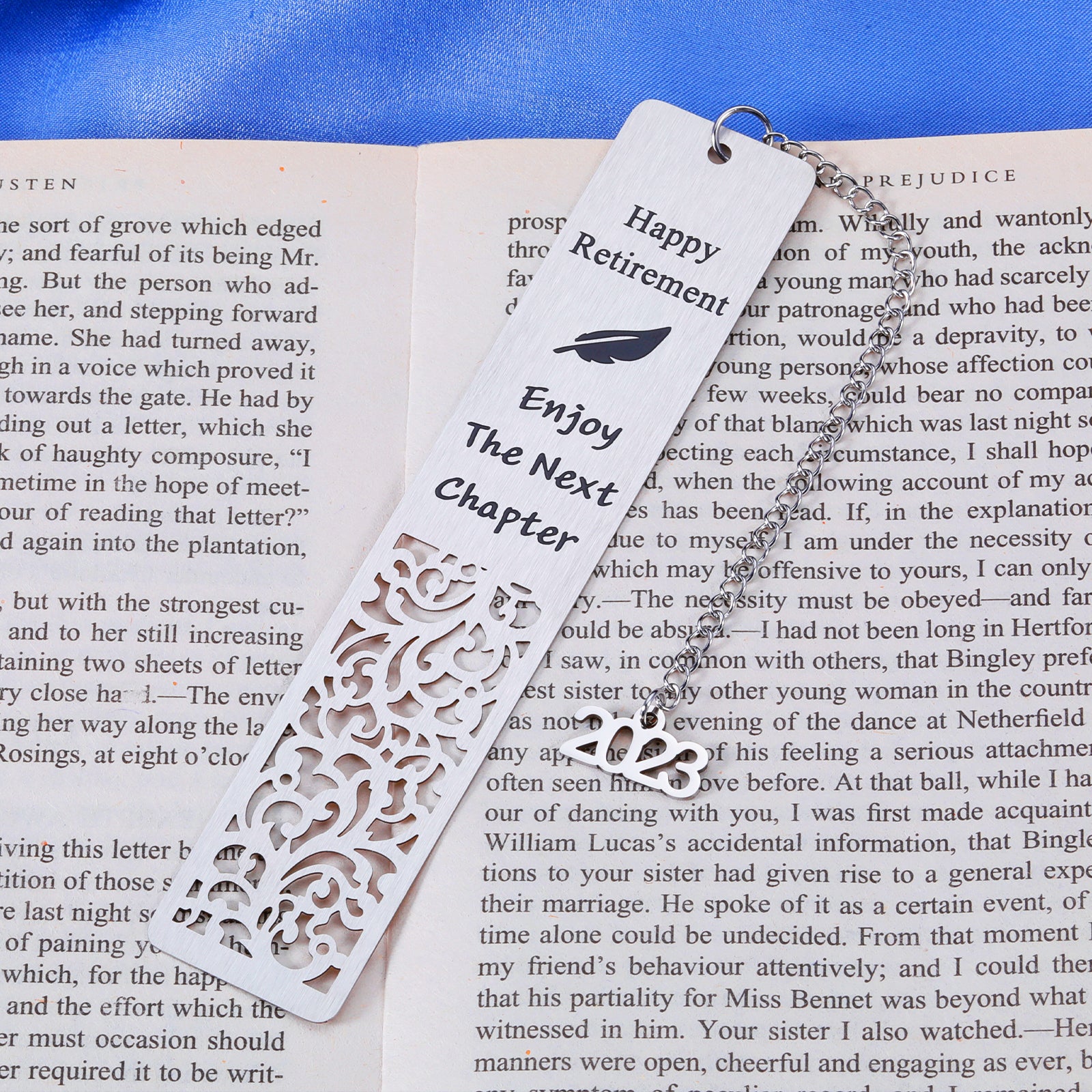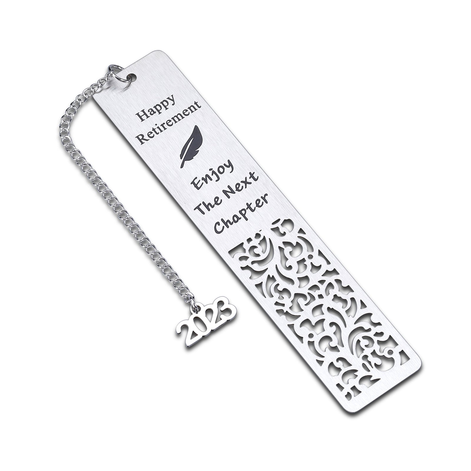 • Happy Retirement Gifts-- Clearly engraved with “Happy Retirement. Enjoy the Next Chapter”, this metal bookmark with a 2023 pendant is a first choice retirement gift for retired coworker, retired employee, colleague, team member, staff, boss, leader, mentor, supervisor, manager, work bestie, business partners, former colleague, work bff, work mate, subordinate, family member, etc. to send your good wishes for their next chapter!