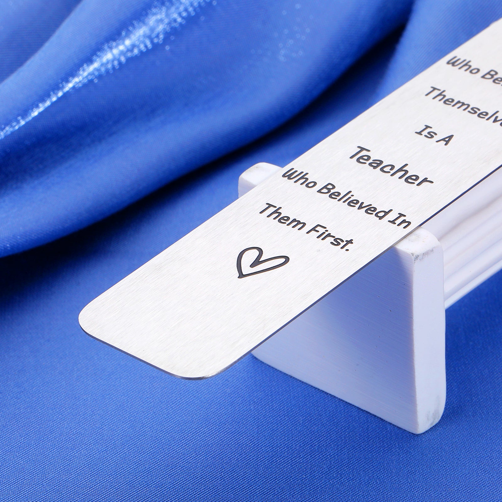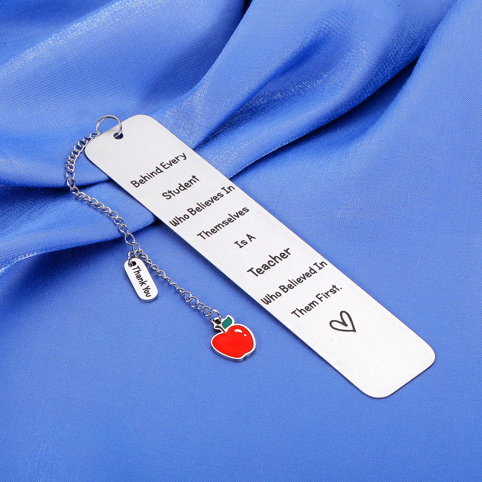 • Best Teacher Gifts-- Cute bookmarks engraved with thoughtful words "Behind Every Student Who Believes In Themselves Is A Teacher Who Believed In Them First." Thank you teacher gifts which is perfect for preschool, 1st 5th 8th grade, primary school, high school, college, kindergarten teacher gifts, music teacher gifts, dance teacher gifts, math teacher gift, science teacher gifts, daycare teacher appreciation gifts. Whoever receives it will feel touch.