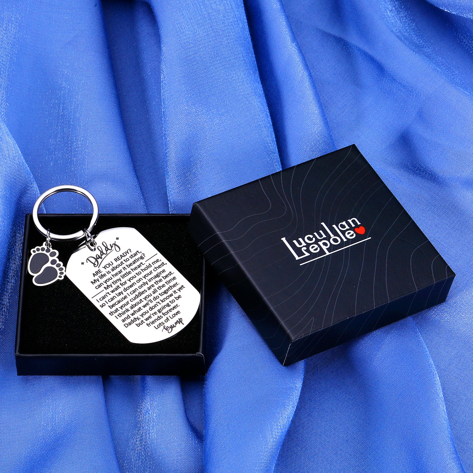 Expectant Father Gifts-- Size: 1.30*2.17*0.06 inches. Made of premium stainless steel with nice weight in hand, not fade, bend or break easily for dads to cherish for a lifetime. The charm won’t fall since the connection ring is welded. Wrapped individually, preventing scratches in transport, packaged in a Lucullan Lepole gift box, ready for a nice presentation! Any question or advice, please feel free to contact us and we will do better.